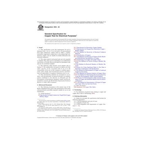 ASTM B49-20 Standard Specification for Copper Rod for Electrical Purposes