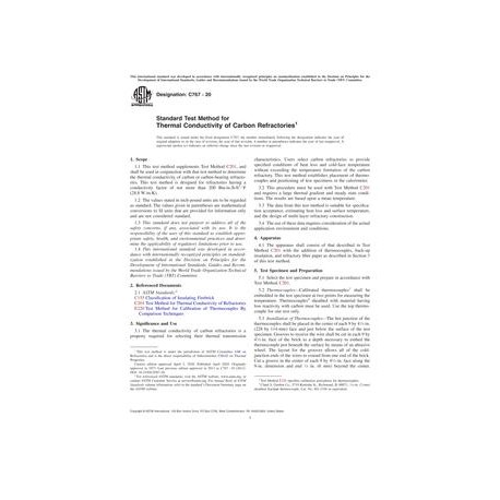 ASTM C767-20 Standard Test Method for Thermal Conductivity of Carbon Refractories