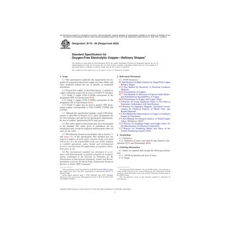 ASTM B170-99(2020) Standard Specification for Oxygen-Free Electrolytic Copper-Refinery Shapes