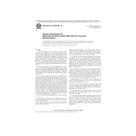 ASTM A615/A615M-20 Standard Specification for Deformed and Plain Carbon-Steel Bars for Concrete Reinforcement