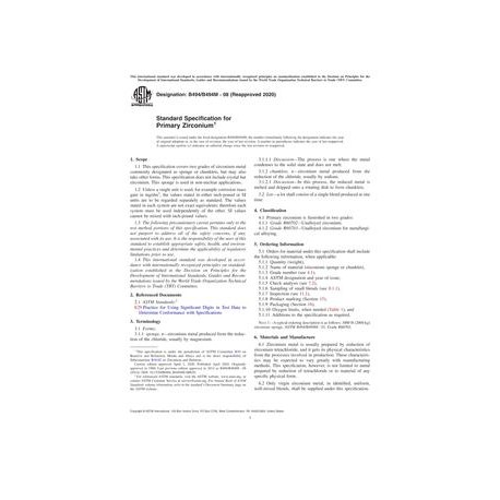 ASTM B494/B494M-08(2020) Standard Specification for Primary Zirconium