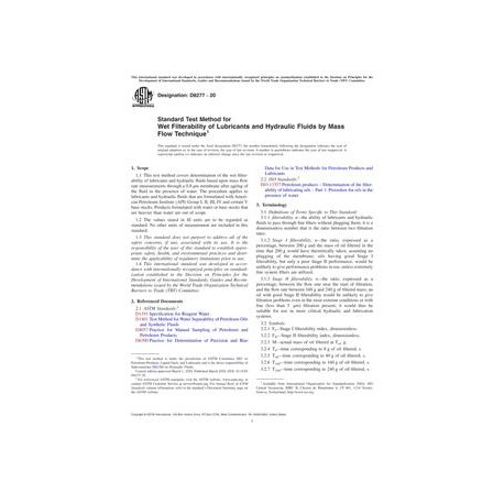 ASTM D8277-20 Standard Test Method for Wet Filterability of Lubricants and Hydraulic Fluids by Mass Flow Technique