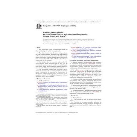 ASTM A470/A470M-05(2020) Standard Specification for Vacuum-Treated Carbon and Alloy Steel Forgings for Turbine Rotors and Shafts