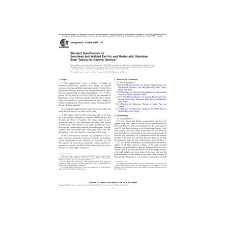 ASTM A268/A268M-20 Standard Specification for Seamless and Welded Ferritic and Martensitic Stainless Steel Tubing for General Service
