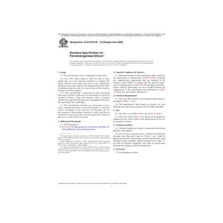 ASTM A701/A701M-10(2020) Standard Specification for Ferromanganese-Silicon