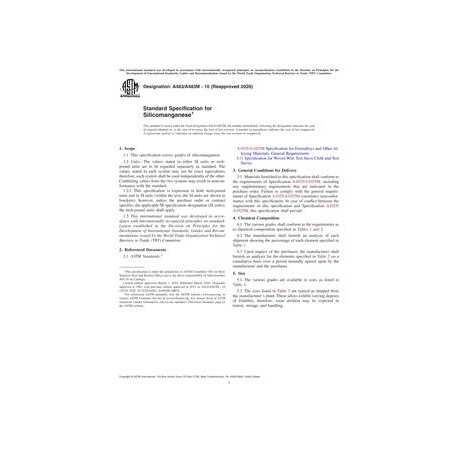 ASTM A483/A483M-10(2020) Standard Specification for Silicomanganese