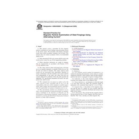 ASTM A966/A966M-15(2020) Standard Practice for Magnetic Particle Examination of Steel Forgings Using Alternating Current