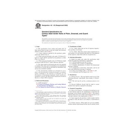 ASTM A2-02(2020) Standard Specification for Carbon Steel Girder Rails of Plain, Grooved, and Guard Types