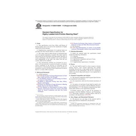 ASTM A1089/A1089M-14(2020) Standard Specification for Highly Loaded Anti-Friction Bearing Steel