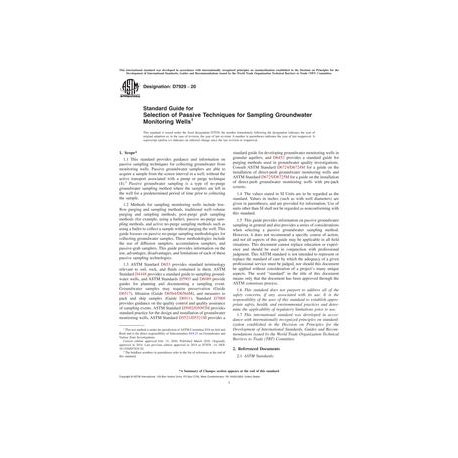 ASTM D7929-20 Standard Guide for Selection of Passive Techniques for Sampling Groundwater Monitoring Wells