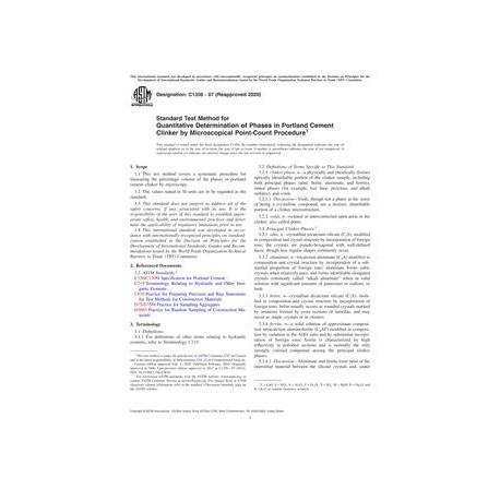 ASTM C1356-07(2020) Standard Test Method for Quantitative Determination of Phases in Portland Cement Clinker by Microscopical Point-Count Procedure