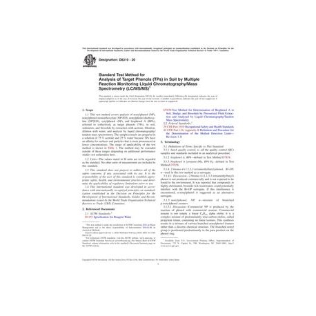ASTM D8310-20 Standard Test Method for Analysis of Target Phenols (TPs) in Soil by Multiple Reaction Monitoring Liquid Chromatography/Mass Spectrometry (LC/MS/MS)
