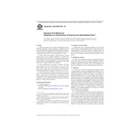 ASTM D2014/D2014M-20 Standard Test Method for Expansion or Contraction of Coal by the Sole-Heated Oven