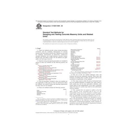 ASTM C140/C140M-20 Standard Test Methods for Sampling and Testing Concrete Masonry Units and Related Units