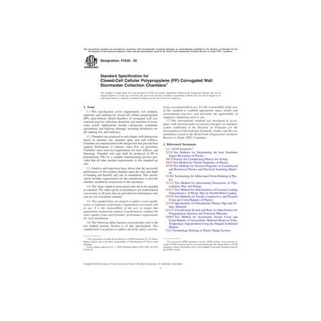 ASTM F3430-20 Standard Specification for Closed-Cell Cellular Polypropylene (PP) Corrugated Wall Stormwater Collection Chambers