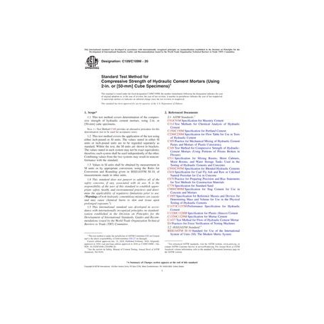 1.1This test method covers determination of the compressive strength of hydraulic cement mortars, using 2-in. or [50-mm] cube specimens.