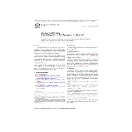 ASTM C40/C40M-20 Standard Test Method for Organic Impurities in Fine Aggregates for Concrete