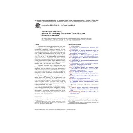 ASTM D6411/D6411M-99(2020) Standard Specification for Silicone Rubber Room Temperature Vulcanizing Low Outgassing Materials