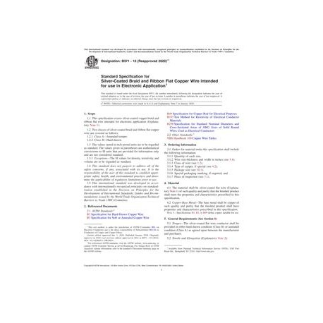 ASTM B971-10(2020)e1 Standard Specification for Silver-Coated Braid and Ribbon Flat Copper Wire intended for use in Electronic Application