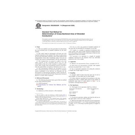 ASTM B263/B263M-14(2020) Standard Test Method for Determination of Cross-Sectional Area of Stranded Conductors