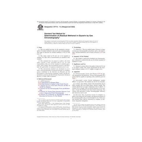 ASTM D7716-11a(2020) Standard Test Method for Determination of Residual Methanol in Glycerin by Gas Chromatography
