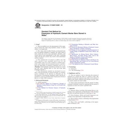 ASTM C1038/C1038M-19 Standard Test Method for Expansion of Hydraulic Cement Mortar Bars Stored in Water