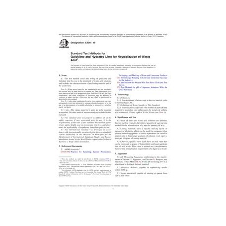 ASTM C400-19 Standard Test Methods for Quicklime and Hydrated Lime for Neutralization of Waste Acid