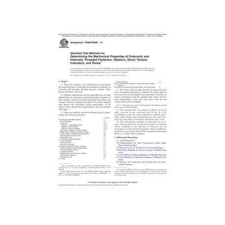 ASTM F606/F606M-19 Standard Test Methods for Determining the Mechanical Properties of Externally and Internally Threaded Fasteners, Washers, Direct Tension Indicators, and Rivets