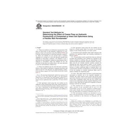ASTM D6035/D6035M-19 Standard Test Methods for Determining the Effect of Freeze-Thaw on Hydraulic Conductivity of Compacted or Intact Soil Specimens Using a Flexible Wall Permeameter