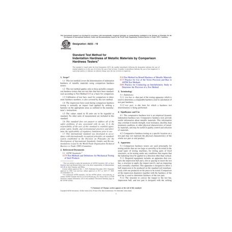 ASTM A833-19 Standard Test Method for Indentation Hardness of Metallic Materials by Comparison Hardness Testers