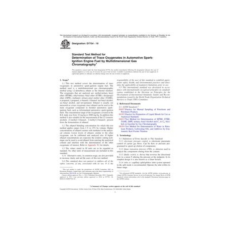 ASTM D7754-19 Standard Test Method for Determination of Trace Oxygenates in Automotive Spark-Ignition Engine Fuel by Multidimensional Gas Chromatography