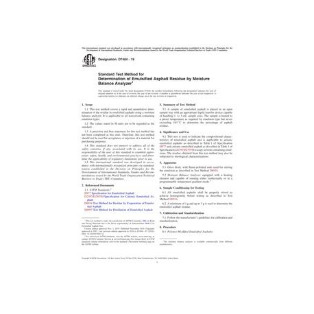 ASTM D7404-19 Standard Test Method for Determination of Emulsified Asphalt Residue by Moisture Balance Analyzer