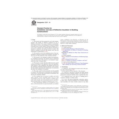 ASTM C727-19 Standard Practice for Installation and Use of Reflective Insulation in Building Constructions