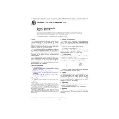 ASTM C317/C317M-00(2019) Standard Specification for Gypsum Concrete