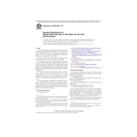 ASTM A704/A704M-19e1 Standard Specification for Welded Steel Plain Bar or Rod Mats for Concrete Reinforcement