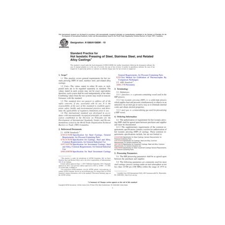 ASTM A1080/A1080M-19 Standard Practice for Hot Isostatic Pressing of Steel, Stainless Steel, and Related Alloy Castings