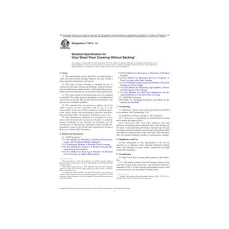ASTM F1913-19 Standard Specification for Vinyl Sheet Floor Covering Without Backing