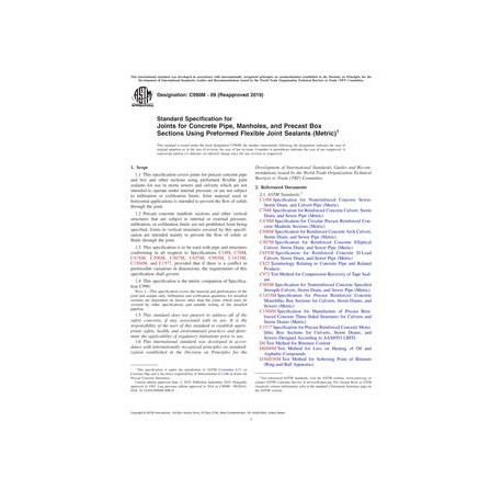 ASTM C990M-09(2019) Standard Specification for Joints for Concrete Pipe, Manholes, and Precast Box Sections Using Preformed Flexible Joint Sealants (Metric)
