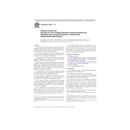 ASTM D8231-19 Standard Practice for the Use of a Low Voltage Electronic Scanning System for Detecting and Locating Breaches in Roofing and Waterproofing Membranes