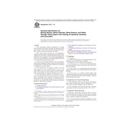 ASTM C511-19 Standard Specification for Mixing Rooms, Moist Cabinets, Moist Rooms, and Water Storage Tanks Used in the Testing of Hydraulic Cements and Concretes