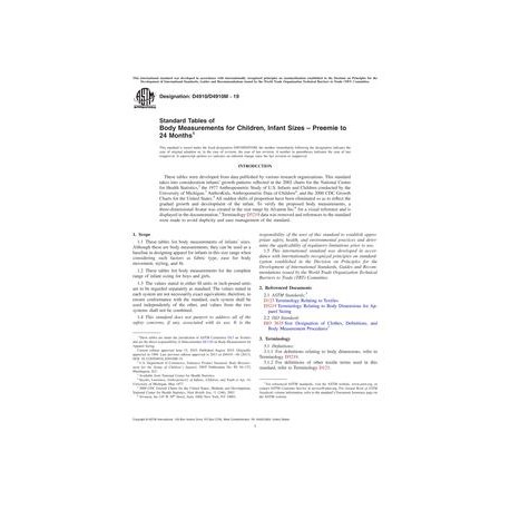ASTM D4910/D4910M-19 Standard Tables of Body Measurements for Children, Infant Sizes - Preemie to 24 Months