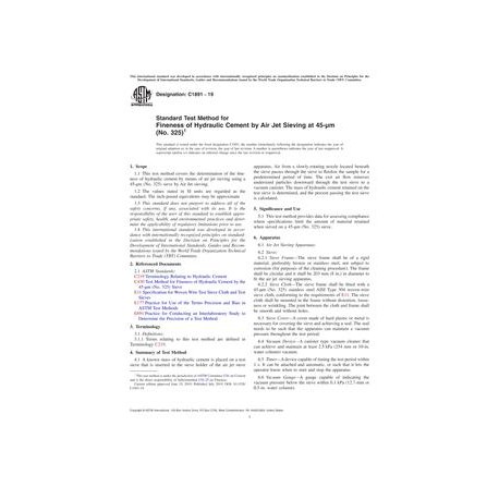 ASTM C1891-19 Standard Test Method for Fineness of Hydraulic Cement by Air Jet Sieving at 45-µm (No. 325)