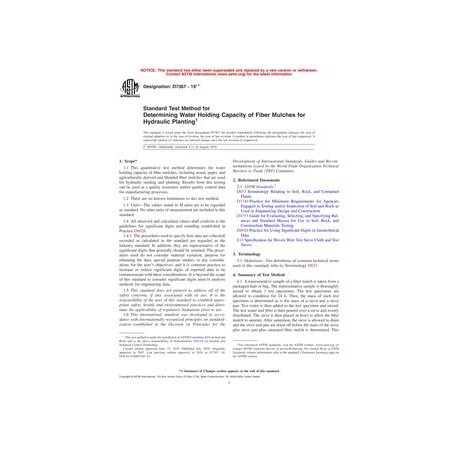 ASTM D7367-19e1 Standard Test Method for Determining Water Holding Capacity of Fiber Mulches for Hydraulic Planting