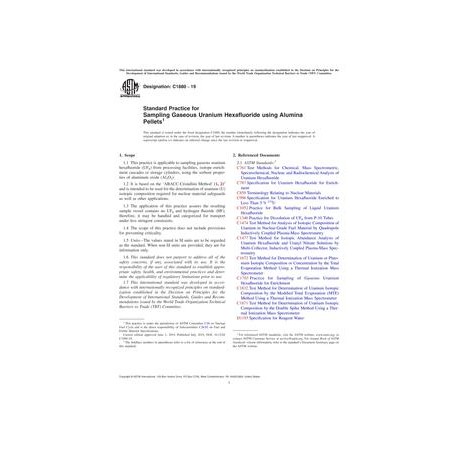 ASTM C1880-19 Standard Practice for Sampling Gaseous Uranium Hexafluoride using Alumina Pellets