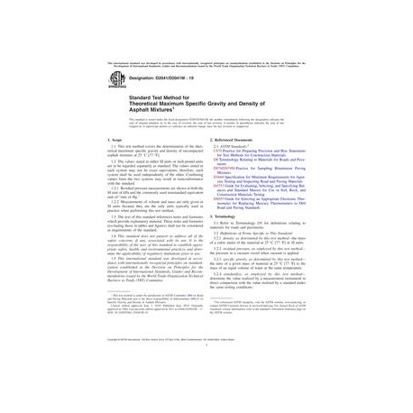ASTM D2041/D2041M-19 Standard Test Method for Theoretical Maximum Specific Gravity and Density of Asphalt Mixtures