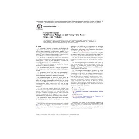 ASTM F3368-19 Standard Guide for Cell Potency Assays for Cell Therapy and Tissue Engineered Products