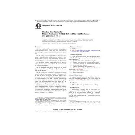 ASTM A214/A214M-19 Standard Specification for Electric-Resistance-Welded Carbon Steel Heat-Exchanger and Condenser Tubes