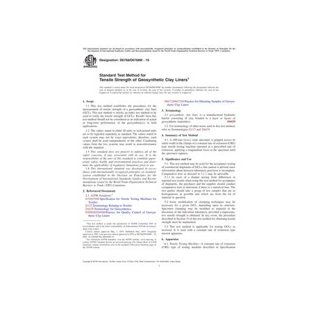 ASTM D6768/D6768M-19 Standard Test Method for Tensile Strength of Geosynthetic Clay Liners