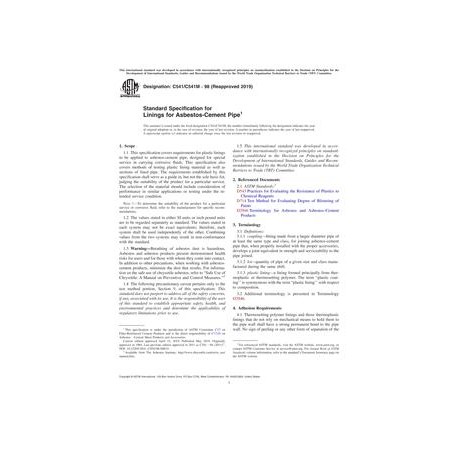 ASTM C541/C541M-98(2019) Standard Specification for Linings for Asbestos-Cement Pipe
