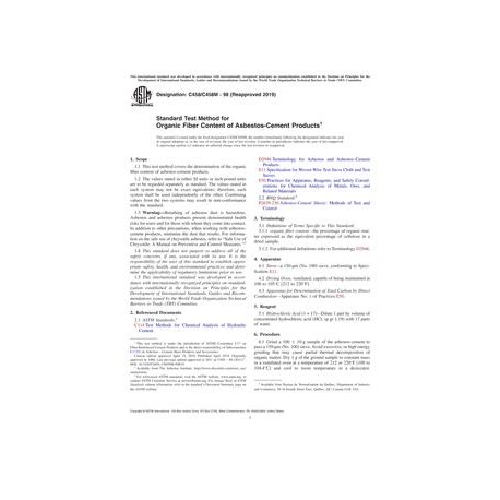 ASTM C458/C458M-98(2019) Standard Test Method for Organic Fiber Content of Asbestos-Cement Products